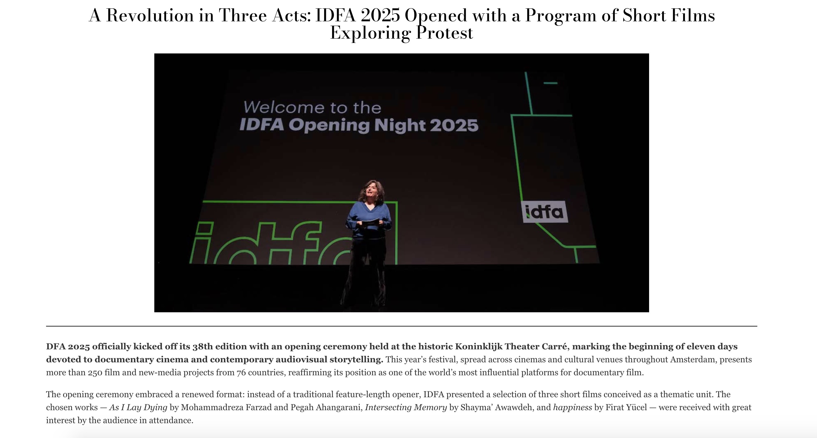 Dans Caligari sur l’ouverture de l’IDFA : Article complet ici