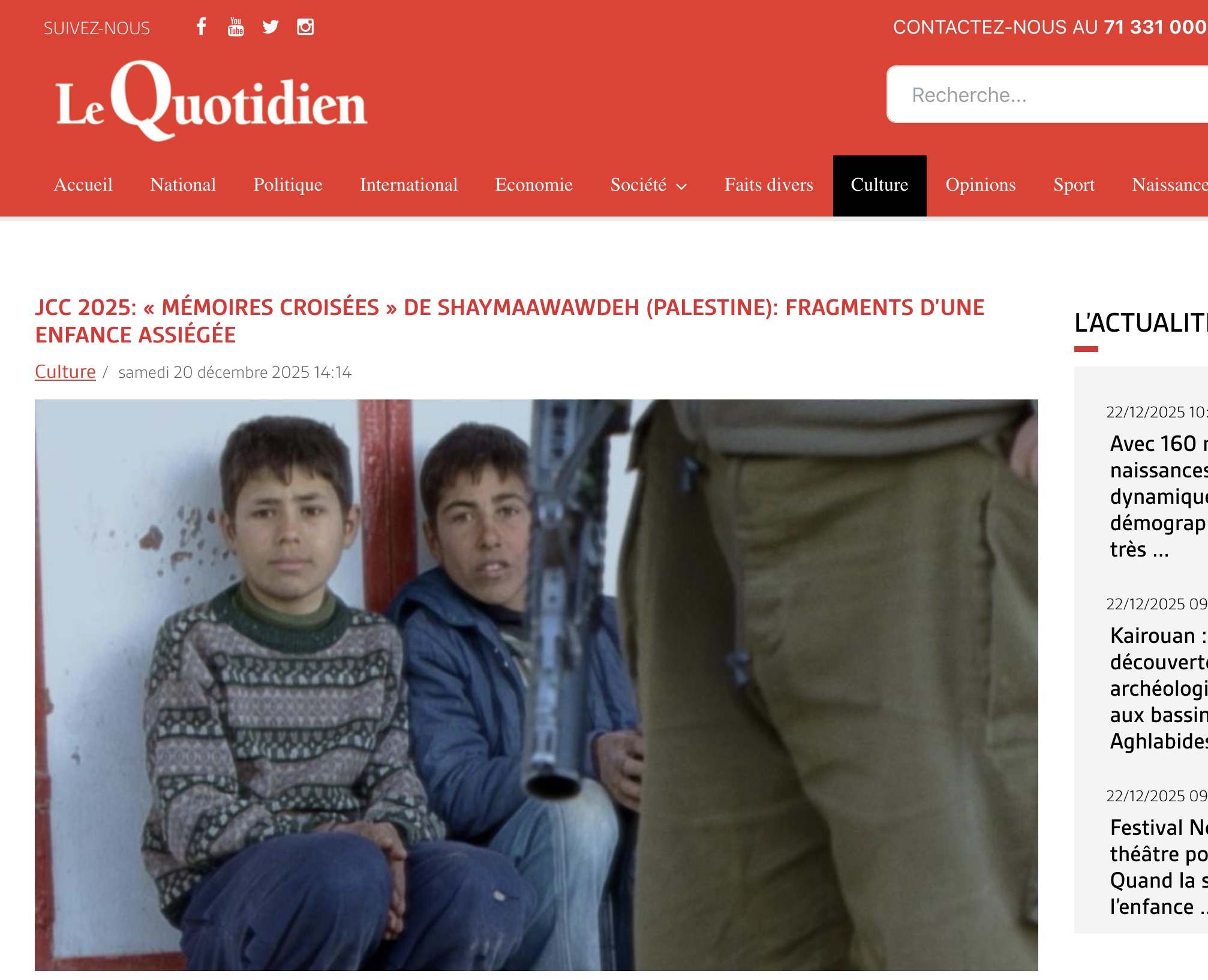 Dans le Quotidien a l'occasion de la sélection aux Journées Cinématographiques de Carthages (Tunisie). Article complet ici