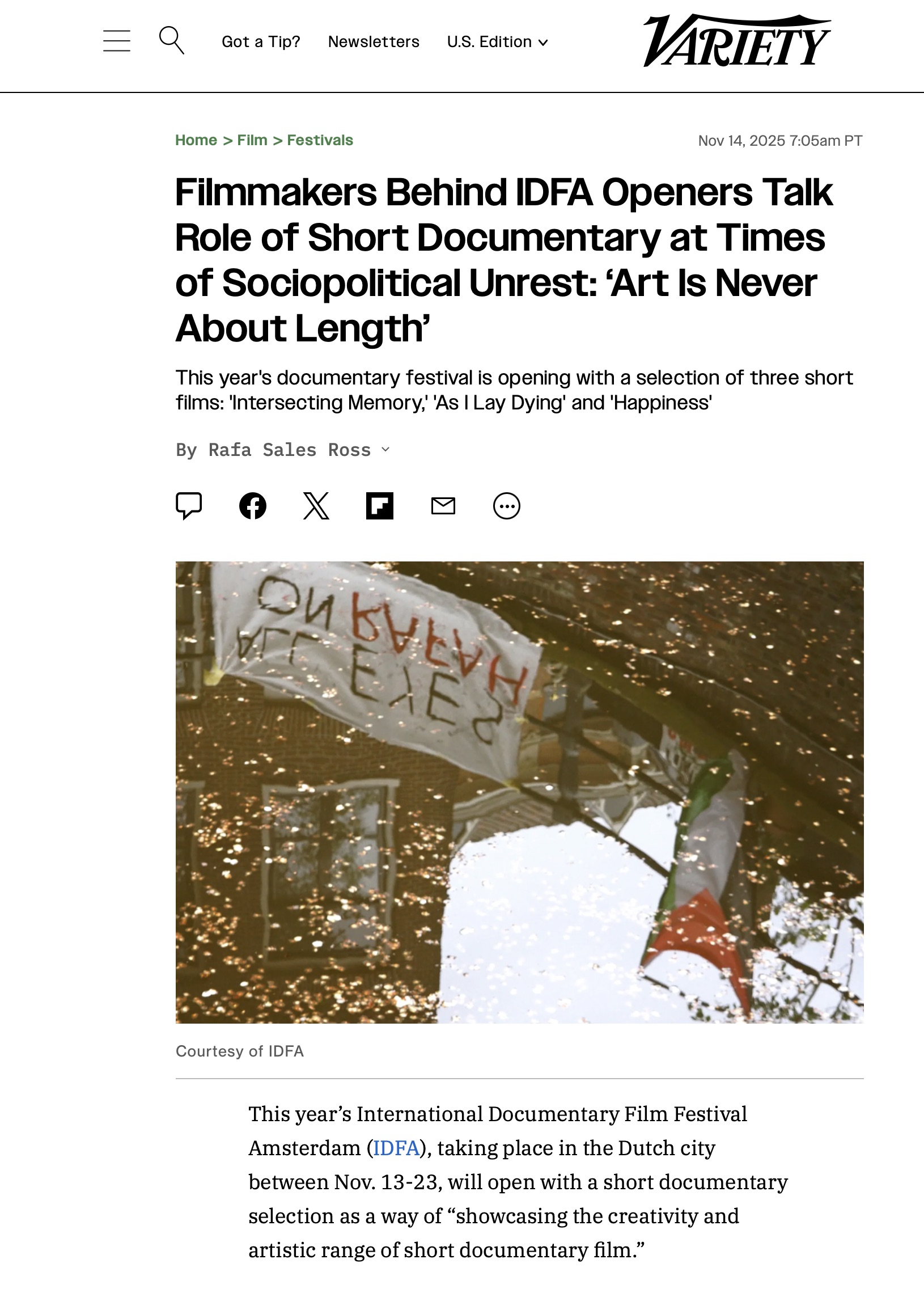 Dans Variety le 14 novembre 2025 : Article complet ici