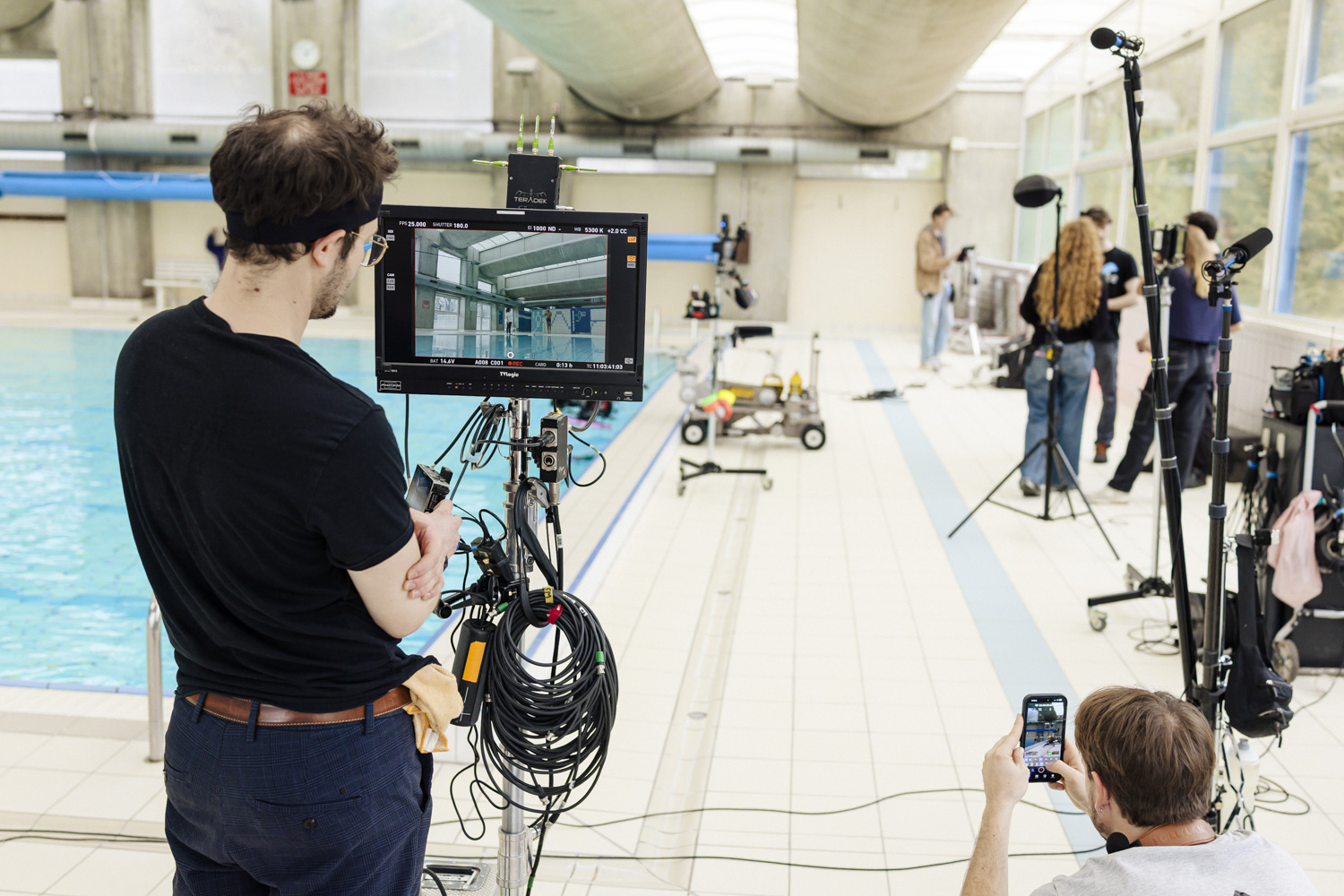 Photos de tournage de À la nage de Maxime Hervouet - lauréat du concours de scénario de série courte 5x2